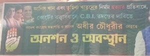 সময় কলকাতা ডেস্ক : কলকাতা ধর্মতলায় আনিস খান এবং তুহিনা খাতুনের নির্মম হত্যার প্রতিবাদ। সিবিআই (CBI) তদন্তের দাবিতে প্রদেশ কংগ্রেস সভাপতি ও সাংসদ অধীর রঞ্জন চৌধুরীর নেতৃত্বে অনশন ও অবস্থান বিক্ষোভ শুরু হয়। শুধু তাই নয় রাজ্য পুলিশ প্রশাসনকে ব্যানার লাগিয়ে কটাক্ষ করলেন অধীর রঞ্জন চৌধুরী। ব্যানারে লিখেছেন, পশ্চিমবঙ্গের মা-মাটি-মানুষের সরকারের পুলিশের নতুন প্রকল্প ‘দুয়ারে খুন’।আর সেই প্রকল্পে প্রথম শহীদ আনিস খান। যার রক্ত ঋণ রক্ত দিয়ে শোধ কর।প্রসঙ্গত, আনিস খানের মৃত্যুর প্রতিবাদে কলকাতার রাজপথে প্রতিবাদ কর্মসূচি সংগঠিত করতে গিয়ে সিপিআইএমের যুব নেত্রী মীনাক্ষী মুখার্জি সহ ১৬ জন কর্মী-সমর্থক পুলিশের হাতে গ্রেপ্তার হতে হয়।