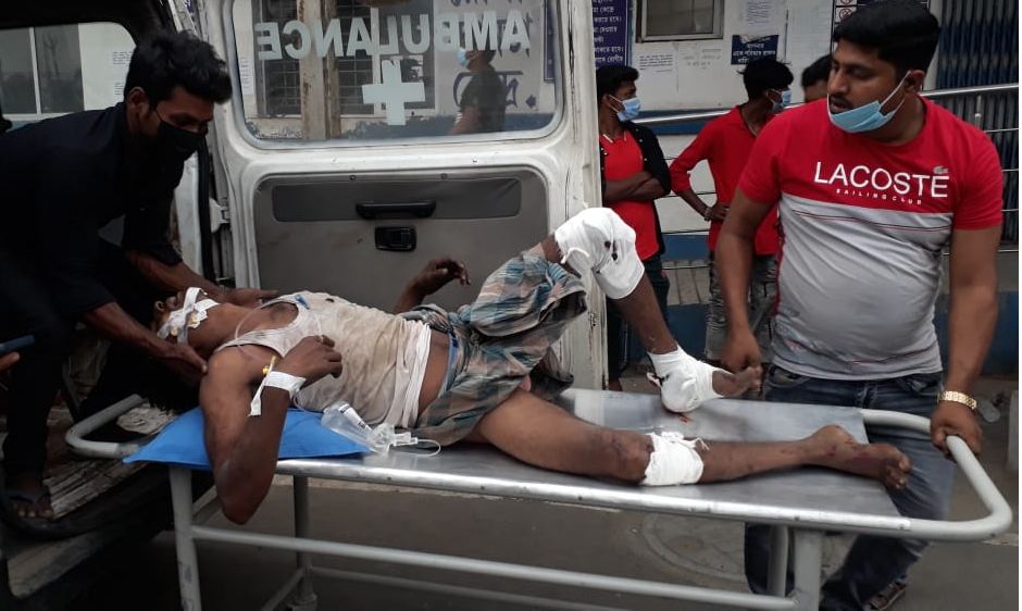 সময় কলকাতা ডেস্ক: কাঠ বোঝাই একটি ১০৭, ম্যাক্স গাড়ি নিয়ন্ত্রণ হারিয়ে সজোরে ধাক্কা মারল আম গাছে। গাছে ধাক্কা মারার পর গাড়িটি নিয়ন্ত্রণ হারিয়ে উলটে যায়। উত্তর ২৪ পরগনার বাদুড়িয়া থানার বাগজোলা পেট্রোল পাম্প এলাকার ঘটনায় কেবিনে থাকা চালক খালাসী সহ ছয় জন গুরুতর জখম হয়। তাঁদেরকে স্থানীয় বাসিন্দারা উদ্ধার করে রুদ্রপুর গ্রামীণ হাসপাতালে নিয়ে যান। ওই ঘটনায় আসলে তাদের মধ্যে । রাজীব ইসলাম ও বাবু মণ্ডল নামে দুইজনকে চিকিৎকেরা মৃত বলে ঘোষণা করে। মৃতরা মাটিয়া থানার গোপালপুর এলাকার বাসিন্দা। বাকী চারজনের অবস্থা আশঙ্কাজনক।তাদের বসিরহাট জেলা হাসপাতালে স্থানান্তরিত করা হয়েছে।