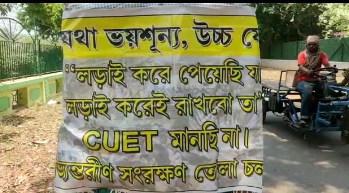 ইউজিসির কমন ইউনিভার্সিটি এন্ট্রান্স টেস্ট বা সি ইউ ই টি তে যুক্ত হতে চলেছে বিশ্বভারতী বিশ্ববিদ্যালয়। ফলে বিশ্বভারতীর পাঠভবন ও শিক্ষাসত্রের মতন বিভিন্ন বিদ্যালয়ের দ্বাদশ শ্রেণী উত্তীর্ণ পড়ুয়ারা সি ইউ ই টি প্রবেশিকা পরীক্ষায় উত্তীর্ণ হলেই তবেই তারা ভর্তি হতে পারবেন বিশ্বভারতীতে। যারা উত্তীর্ণ হতে পারবেন না তাদের ভবিষ্যৎ নিয়ে অনিশ্চয়তা যাতে না হয় অবিলম্বে সি ইউ ই টি বাতিলের করতে হবে বলে সোচ্চার হন বিশ্বভারতীর পড়ুয়ারা।