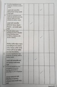 শুধু চিকিৎসক ও নার্স আর গ্রুপ ডি নয়।হাসপাতালে নানান পরীক্ষা নিরীক্ষার সময় নিয়ম মেনে যথাযথ ব্যবস্থা নেওয়া হয়েছে কিনা তাও জানতে চাওয়া হয়েছে এই ফর্মে।হাসপাতালের ওয়ার্ডের পরিচ্ছন্নতা কিংবা খাবারের মান সবই রোগীর থেকে ফিড ব্যাক নিচ্ছে হাসপাতাল কর্তৃপক্ষ।