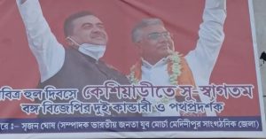 এদিকে, এদিন শুভেন্দু আসার আগেই কেশিয়াড়িতে পৃথক একটি সভায় দেখা যায় মেদিনীপুরের সাংসদ তথা বিজেপি’র সর্বভারতীয় সহ-সভাপতি দিলীপ ঘোষকে। যদিও, ব্যানারে দুজনের একসাথে ছবি ছিল। তবে, সাক্ষাৎ হয়নি দুজনের। বিকেলে পৃথক সভামঞ্চে দেখা যায় বিরোধী দলনেতা শুভেন্দু অধিকারী সহ দলের জেলা নেতৃত্বকে। এদিনের সভায় ফের একবার সাংসদ অভিষেক বন্দ্যোপাধ্যায়-কে তুলোধুনো করেন শুভেন্দু। বলেন, “পিসি বেরোলে ৭০০০ পুলিশ আর ভাইপো বেরোলে ৪০০০ পুলিশ। সমস্ত কাটমানির টাকা পৌঁছয় ভাইপোর কাছে।” দাঁতনের কোনো এক কালীপদ পতি’র নাম নিয়ে শুভেন্দু বলেন, “বাক্স বাক্স টাকা তুলত কালীপদ পতি। আর, তা পৌঁছত ভাইপোর কাছে।” সে এখন ‘ঘরছাড়া’ বলেও কটাক্ষ করেন শুভেন্দু। সর্বোপরি, এদিন কর্মীদের তিনি মাথা উঁচু করে পঞ্চায়েত নির্বাচনের লড়াইয়ের বার্তা দেন।