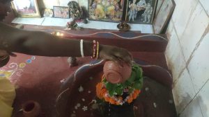 মহাদেবের আরাধনায় মগ্ন ভক্তরা। এই বিশেষ পুণ্যতিথিতে পূর্ব বর্ধমান জেলার মন্তেশ্বর ব্লকের অন্তর্গত মধ্যমগ্রাম উত্তরপাড়ার শিব মন্দিরে ধাত্রীগ্রামে গোবার ঘাট থেকে পায়ে হেঁটে গঙ্গাজল নিয়েই পুণ্যার্থীরা মন্দির প্রাঙ্গনে উপস্থিত হন।