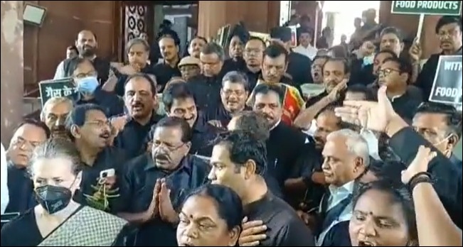 এদিন কংগ্রেসের সাংসদ মল্লিকার্জুন এবং কেসি বেণুগোপাল এ প্রসঙ্গে সংসদে নিজেদের বক্তব্য পেশ করেন। কংগ্রেস সাংসদরা লোকসভা এবং রাজ্যসভা কক্ষে প্রধানমন্ত্রী নরেন্দ্র মোদির বিরুদ্ধে স্লোগান দেন। রাহুল গান্ধী এদিন বলেন, ‘দেশের মানুষের সমস্যাগুলি নিয়ে বিন্দুমাত্র চিন্তিত নয় সরকার। মূল্যবৃদ্ধি, বেকারত্ব, সন্ত্রাস, এই ইস্যুগুলি সংসদে সম্মুখীন করা প্রয়োজন। সরকারের এজেন্ডা চার-পাঁচ শতাংশের মানুষকে কেন্দ্র করেই। এই চার-পাঁচ জন ব্যক্তির স্বার্থ রক্ষার্থেই সরকার চলছে। ধনকুবেরদের স্বার্থেই দেশের অর্থনীতি চালিত হচ্ছে।’