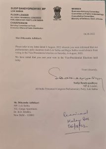 সময় কলকাতা ডেস্কঃ দলের নির্দেশকে উপেক্ষা করে কেন উপরাষ্ট্রপতি নির্বাচনে ভোট দিয়েছেন জানতে পূর্ব মেদিনীপুর জেলার দুই তৃণমূল সাংসদ শিশির অধিকারী এবং দিব্যেন্দু অধিকারীকে চিঠি পাঠালেন তৃণমূল সাংসদ সুদীপ বন্দ্যোপাধ্যায়।