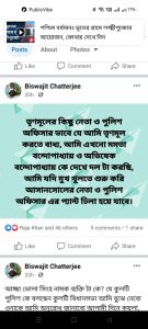 তবে এখানেই শেষ নয়। এরপর রাজ্যের মন্ত্রী মলয় ঘটককে তোপ দেগে তিনি বলেন, ‘মলয় ঘটক আমার গুরু,আইডল। ২০০৪ সালে ওনার সঙ্গে আমি শ্রমিক রাজনীতি করেছি। উনি আমাকে আইএনটিটিইউসি-র দায়িত্ব দিয়েছিলেন। কিন্তু, তখনকার মলয় ঘটক আর এখনকার মলয় ঘটকের মধ্যে অনেক তফাৎ রয়েছে।‘ এমনকী জেলার তৃণমূল নেতা শিব দাসন দাশুকে ‘জোকার’ বলেও কটাক্ষ করেন বিশ্বজিৎ চট্টোপাধ্যায়। যুব তৃণমূল নেতার সোশ্যাল মিডিয়ায় করা এহেন পোস্টকে কেন্দ্র করেই ব্যাপক চাঞ্চল্যের সৃষ্টি হয়েছে। যদিও গোটা বিষয়টিতে কোনওরকম মন্তব্য করতে নারাজ জেলা তৃণমূল নেতৃত্ব।
