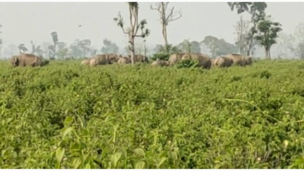 Home » জঙ্গলে খোরাক কম, চা বাগানে ঢুকে পড়ল হাতির দল