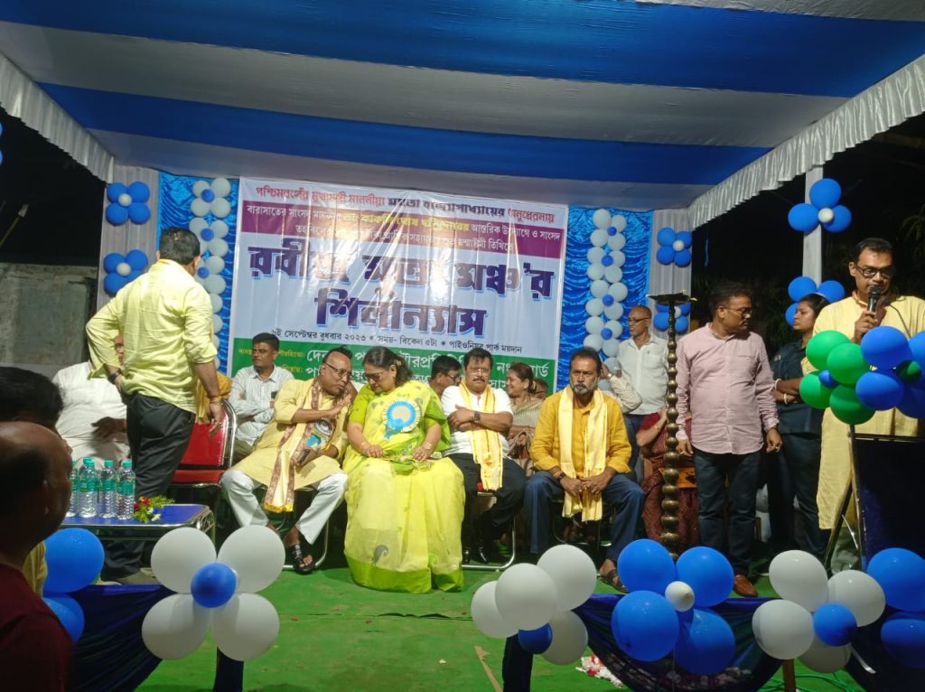 পুরন্দর চক্রবর্তী, সময় কলকাতা,৬ সেপ্টেম্বর : রবীন্দ্রনাথ ঠাকুর শান্তিনিকেতন প্রতিষ্ঠা করেছিলেন যা কিনা প্রকৃতির কোলে শ্রদ্ধার সঙ্গে জ্ঞানের বিকাশ আর সৃজনশীলতার কেন্দ্র । কবিগুরুর আদর্শে সাংসদ কাকলি ঘোষ দস্তিদারও চেয়েছিলেন বারাসাতে একটি ক্ষুদ্র শান্তিনিকেতন গড়ে তুলতে।প্রতিবন্ধকতা ছিল। সাংসদের ভাবনার রূপায়ণে যাবতীয় বাধা দূরে সরিয়ে বারাসাতের তৃণমূল নেতা ও পুরপিতা দেবব্রত পালের উদ্যোগে সাংসদ তহবিলের অর্থে নাগরিকরা পেতে চলেছেন শহরের বুকে এক টুকরো শান্তিনিকেতন। এক অভূতপূর্ব ভাবনার ফসল ফলতে চলেছে বারাসাতের পাইওনীয়ার পার্কে। বুধবার সন্ধ্যায় রবীন্দ্র মুক্তমঞ্চ নামে মিনি শান্তিনিকেতনের শিলান্যাস হয়ে গেল ঘটা করে।