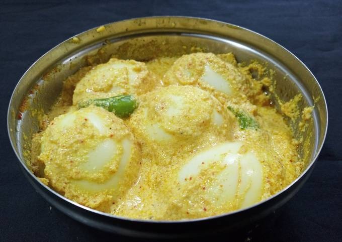 প্রথমেই ডিম সেদ্ধ করে একটু চিরে নিন। এবার তেল গরম করে তাতে পিঁয়াজ বাটা, লঙ্কা গুঁড়ো, নুন, চিনি, হলুদ দিয়ে কষান। মশলা কষে এলে তাতে কাঁচা লঙ্কা, ফেটানো টক দই এবং অল্প জল দিয়ে ভাল করে নাড়ুন। এবার তাতে নারকেল কোরা দিয়ে কষান। গ্রেভি ফুটতে থাকলে তাতে সেদ্ধ ডিম দিয়ে ঢাকা দিন। ফুটতে থাকলে ঢাকনা খুলে ধনেপাতা ছড়িয়ে দিন। মাঝারি আঁচে ২ মিনিট রেখে নামানোর আগে ওপর থেকে কয়েক ফোঁটা সরষের তেল ছড়িয়ে দিন। ব্যস তৈরি ডিমের ভাপা।