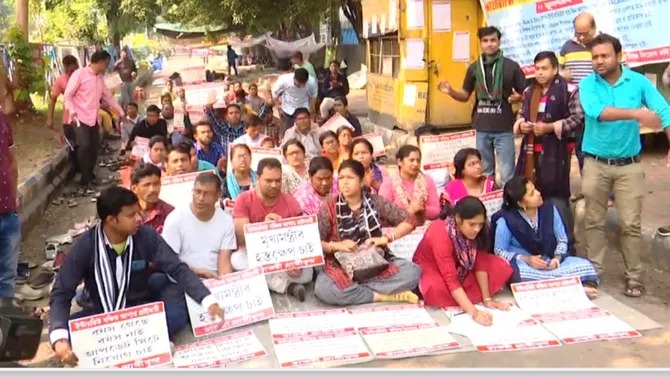 সময় কলকাতা ডেস্ক, ২৪ নভেম্বরঃ নিয়োগের দাবিতে ফের রাজপথে আপার প্রাইমারি চাকরি প্রার্থীরা। এই পরিস্থিতিতেই বৃহস্পতিবার রাত থেকে চাকরিপ্রার্থীরা নিয়োগের দাবিতে ধর্ণা চালিয়ে যাচ্ছেন। ২০১৫ সালে আপার প্রাইমারি শিক্ষক নিয়োগের পরীক্ষা হলেও এখনও মেলেনি নিয়োগ। তাই ধর্মতলার পর এবার শিক্ষা দফতরের অফিস তথা বিকাশ ভবনের পাশেই শুরু হয় বিক্ষোভ। গত বুধবার থেকে বিক্ষোভ শুরু করেছিলেন উচ্চ প্রাথমিকের চাকরিপ্রার্থীরা। বৃহস্পতিবার থেকে শুরু হয়েছে অনশন। তাদের পাশে দাঁড়াতে প্রতিবাদ মঞ্চে আসেন কংগ্রেস নেতা কৌস্তব বাগচী ও বিজেপি বিধায়ক হিরণময় চট্টোপাধ্যায়।