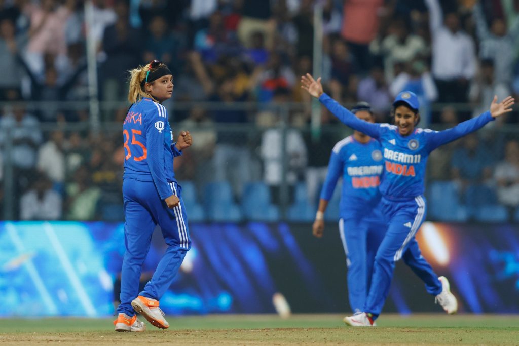 সিরিজের প্রথম দু’টি টি-টোয়েন্টি ম্যাচে ইংল্যান্ডের বিরুদ্ধে হারতে হয়েছিল। এই ম্যাচে হারলে ঘরের মাটিতে টি-টোয়েন্টি সিরিজে হোয়াইটওয়াশ হতে হত ভারতকে। হরমনপ্রীতদের কাছে এই ম্যাচ ছিল মান রক্ষার লড়াই। অপরদিকে আগেই সিরিজের দখল নেওয়ায় ইংল্যান্ডের কাছে ম্যাচটি ছিল নিয়মরক্ষার। সেই ম্যাচে টসে জিতে প্রথমে ব্যাট করার সিদ্ধান্ত নেয় ইংল্যান্ড। প্রথমে ব্যাট করতে নেমে ব্যর্থ হন তাদের দুই ওপেনার। তাঁদের দু’জনকেই ফেরান রেণুকা সিং। ইংল্যান্ডের বাকি ব্যাটিং অর্ডারে ধস নামান আমানজ্যোত কউর, শ্রেয়াঙ্কা পাটিল ও বাংলার সাইকা ইসাক। সাইকা ও শ্রেয়াঙ্কা দুজনে নিলেন ৩ টি করে উইকেট। আমানজ্যোত ও রেণুকা নিয়েছেন ২ টি করে উইকেট। ইংল্যান্ডের ইনিংস শেষ হয়ে যায় ১২৬ রানে। তাদের হয়ে সর্বোচ্চ রান করেন অধিনায়ক হেথার নাইট। ৫২ রান করে ব্যাট হাতে দলের মুখ রক্ষা করেন ইংলিশ অধিনায়ক। তাকে কিছুটা সঙ্গ দেন অ্যামি জোনস। তার অবদান ২৫ রান। এই দুজন ছাড়া আর কোনও ব্যাটার দুই অঙ্কের রান করতে পারেননি।