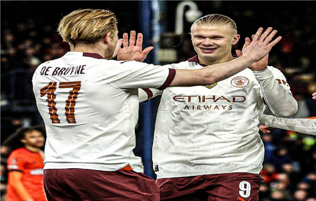 আগ্রাসী মেজাজে শুরু করে ম্যানচেস্টার সিটি। মাত্র তিন মিনিটের মধ্যে সিটির হয়ে গোলের খাতা খোলেন হাল্যান্ড। কেভিন ডি’ব্রুইনার বাড়ানো পাস থেকে আসে প্রথম গোল। প্রথম গোলের ১৫ মিনিটের মাথায় ফের বেলজিয়াম-নরওয়ে জুটির কামাল। ফের ডি’ব্রুইনার পাস থেকে দলের ব্যবধান দ্বিগুণ করেন হাল্যান্ড। ৪০ মিনিটে আবার এই জুটির সৌজন্যে তৃতীয় গোল করে সিটি। এবারও ডি’ব্রুইনার বাড়ানো বল থেকে গোল করেন হাল্যান্ড। প্রথমার্ধের অন্তিম লগ্নে একটি গোল শোধ করে লুটন। বার্কলের পাস থেকে গোলর করেন জর্ডন ক্লার্ক।