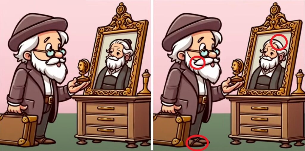 পরীক্ষা করে দেখা গিয়েছে, এই ধরনের পরীক্ষা বা চ্যালেঞ্জগুলি মস্তিষ্কের সেই ক্ষেত্রগুলিকে উদ্দীপিত করে। যা মনোযোগ এবং স্মৃতিশক্তির জন্য দায়ী। অতএব, নিয়মিত এই পরীক্ষাটি অনুশীলন করার ফলে বর্ধিত পর্যবেক্ষণ শক্তি এবং আরও ভাল স্মৃতিশক্তি বজায় থাকবে। বিলম্ব না করে এখনই খুঁজে বের করুন। সেই তিনটি পার্থক্য যা প্রথম ছবিকে দ্বিতীয় ছবি থেকে আলাদা করে রেখেছে। এখনো যদি না পারেন তাহলে চলুন আমরা আপনাকে সাহায্য করে দিই। আপনাকে ভালো করে বুঝিয়ে দেবার জন্য লাল কালি দিয়ে জায়গাগুলিকে মার্ক করে দিলাম আমরা।