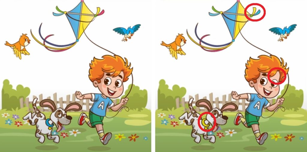 পরীক্ষা করে দেখা গিয়েছে, এই ধরনের পরীক্ষা বা চ্যালেঞ্জগুলি মস্তিষ্কের সেই ক্ষেত্রগুলিকে উদ্দীপিত করে। যা মনোযোগ এবং স্মৃতিশক্তির জন্য দায়ী। অতএব, নিয়মিত এই পরীক্ষাটি অনুশীলন করার ফলে বর্ধিত পর্যবেক্ষণ শক্তি এবং আরও ভাল স্মৃতিশক্তি বজায় থাকবে। বিলম্ব না করে এখনই খুঁজে বের করুন। সেই তিনটি পার্থক্য যা প্রথম ছবিকে দ্বিতীয় ছবি থেকে আলাদা করে রেখেছে। এখনো যদি না পারেন তাহলে চলুন আমরা আপনাকে সাহায্য করে দিই। আপনাকে ভালো করে বুঝিয়ে দেবার জন্য লাল কালি দিয়ে জায়গাগুলিকে মার্ক করে দিলাম আমরা।