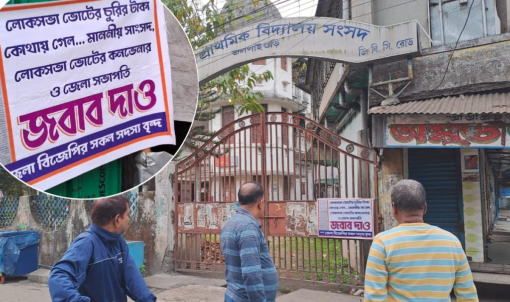 ২০২৬ এর বিধানসভা ভোট যত এগিয়ে আসছে, ততই শুরু হচ্ছে রাজনৈতিক তরজা। রাজ্য বিজেপির অন্দরে দীর্ঘদিন ধরেই চলছে গোষ্ঠীদ্বন্দ্ব। গোষ্ঠীদ্বন্দ্ব শুধুমাত্র বিজেপিতে নয়, গোষ্ঠীদ্বন্দ্ব দীর্ঘদিন ধরেই চলছে তৃণমূলের অন্দরেও। দোলের দিন গেরুয়া রঙে লাগল দুর্নীতির রং। দোলের দিন জলপাইগুড়ি শহরের বিজেপি পার্টি অফিসের কাছেই লাগানো এক পোস্টার নিয়ে শুরু হয়েছে রাজনৈতিক দরজা। পোস্টারে লেখা রয়েছে লোকসভা ভোটের চুরি টাকা কোথায় গেল মাননীয় সাংসদ লোকসভা ভোটের কনভেনার ও জেলা সভাপতি জবাব দাও। নিচে লেখা জেলা বিজেপির সকল সদস্য বৃন্দ। অর্থাৎ বিজেপির নেতৃত্বের বিরুদ্ধে পোস্টার ফেলেছে বিজেপির সদস্যরা। সকালের দিকেই এই পোস্টার দেখছে পথ চলতি মানুষ। পোস্টার দেখামাত্র তারাও হতবাক।