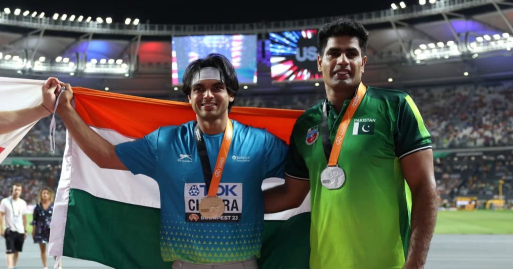 সম্প্রতি পহেলগাঁও এবং অপারেশন সিন্দুর অধ্যায়ের পর ভারত পাকিস্তানের মধ্যে তিক্ততার রেশ বৃদ্ধি পেয়েছে। যার রেশ পড়েছে এশিয়া কাপের ম্যাচে। সেই বিতর্কের মধ্যেই পুরুষদের বিশ্ব অ্যাথলেটিক্স চ্যাম্পিয়নশিপে মুখোমুখি হতে পারেন নীরজ-নাদিম। ট্রাকের বাইরে তারা বন্ধু বলেই পরিচিত।অনূর্ধ্ব-১৯ পর্যায় থেকে মুখোমুখি হচ্ছেন দু’জনে। তাঁদের ব্যক্তিগত সম্পর্ক বেশ ভাল। কিন্তু বর্তমানে দুই দেশের তিক্ততার আবহে সৌজন্য দেখাবেন দুই জনে!