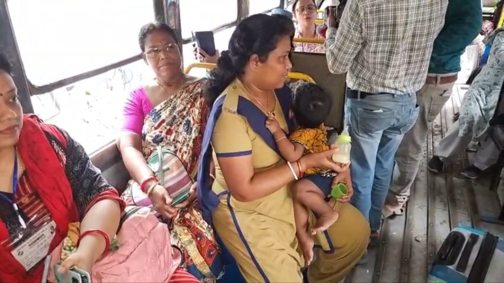 দীপ সেন, সময় কলকাতা : “কী পরিবর্তন আনলে কাকা/ বাজার করতে পকেট ফাঁকা!’ – কেন্দ্র হোক বা রাজ্য, বিরোধীদের এই টু-লাইনার ভোটের আবহে শাশ্বত । পরিবর্তন আসা জরুরি কিনা সেকথাও সবার জানা নেই, পরিবর্তন আসবে কিনা জানা নেই কারও । তবে সবার জানা আছে সন্তানকে দুধে ভাতে রাখতে হলে আজকের এই চড়া বাজারে সংগ্রাম করেই বাঁচতে হবে।মায়েদেরও চাকরি বাঁচিয়ে চলতে হবে। মহিলা পুলিশ কর্মী শিখা মণ্ডল (নাম প্রকাশে অনিচ্ছুক হওয়ায় এই নামেই লেখা হল ) তাই নিজের এগারো মাসের বাচ্চাকে নিয়ে বারাসাতে ভোটের কেন্দ্রে চলে এসেছেন। হয়তো তাও নয়। হয়তো কাজের প্রতি ভালোবাসায় সন্তানকে কোলে নিয়ে পালন করছেন নিরাপত্তা কর্মীর দায়িত্ব।ভোটের কাজও করছেন, আবার কাছছাড়া হতে না পাওয়া সন্তানকে ফিডিং বোতলও তুলে দিচ্ছেন কাজের ফাঁকে। ভোটের বঙ্গে অনন্য রঙ্গ যেন বারাসাতে রাজ্যের মহিলা পুলিশ কর্মীর মধ্যে দিয়ে পেয়েছে অসামান্য মাত্রা। বন্যেরা বনে সুন্দর, শিশুরা মাতৃক্রোড়ে – প্রচলিত প্রবাদ মেনেই শিখা মণ্ডল শিশুকে কোলে নিয়ে ভোটের কাজ করে চলেছেন নিরলস ভাবে। মাতৃস্নেহ, অপত্য স্নেহ আর কাজের প্রতি নিষ্ঠা মিলেমিশে গিয়েছে বঙ্গের ভোটে ।।